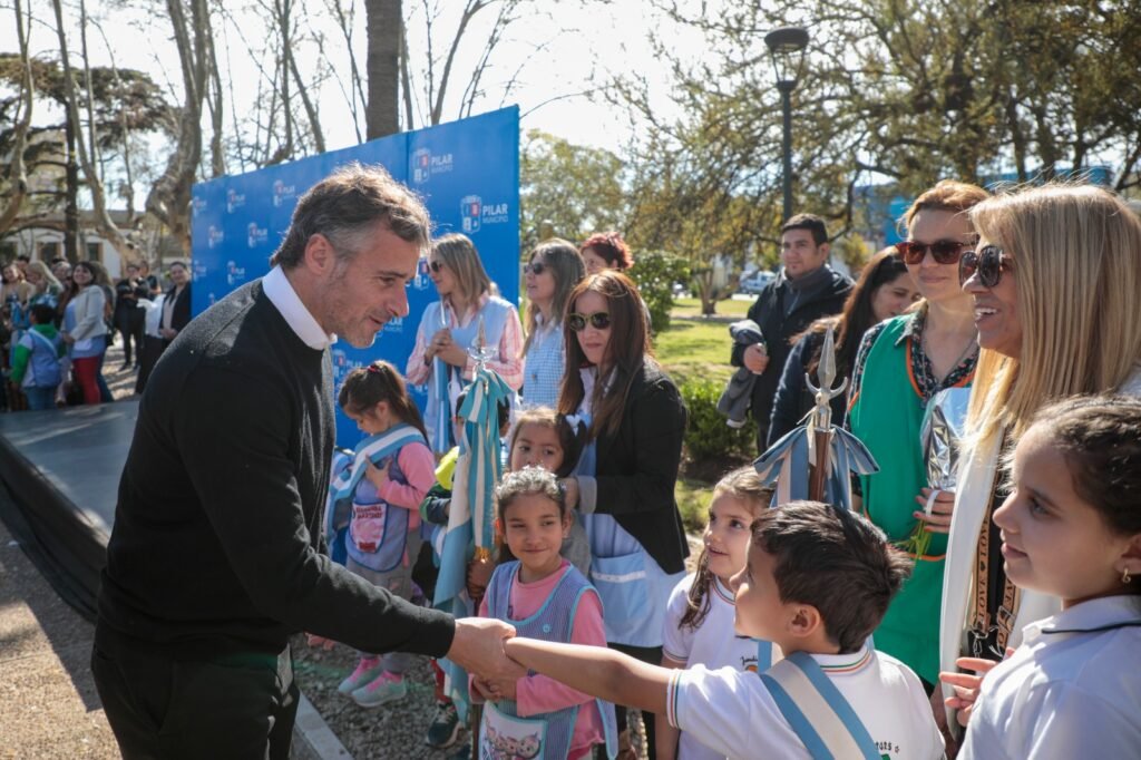 El intendente estuvo acompañado por el secretario de Educación, Damián Espíndola, autoridades de todos los niveles educativos y una gran cantidad de estudiantes que festejaron en la plaza este reconocimiento a los maestros de Pilar.