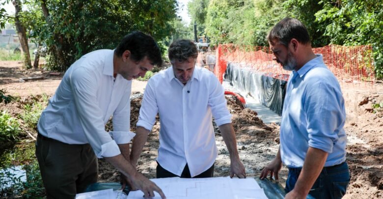 El intendente Federico Achával recorrió la obra hidráulica que avanza en el barrio El Rocío, en Manuel Alberti. Este nuevo sistema de desagües pluviales transformará la vida de los vecinos de esta localidad.